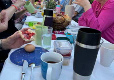 Nach einem Impuls von Pastoralreferentin Verena Kristau und der musikalischen Unterstützung von Kerstin Riegelmeyer wurde in Gemeinschaft gefrühstückt. Hierzu war eine lange Tafel liebevoll mit Blumen und Kerzen dekoriert. Die leckeren Brötchen und der Kaffee wurden vom Förderverein spendiert. Der Vormittag endete mit einem gemütlichen Beisammensein.